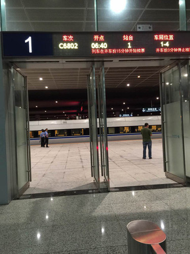 售票员温馨提示,最早一班的列车将在6点40发车。