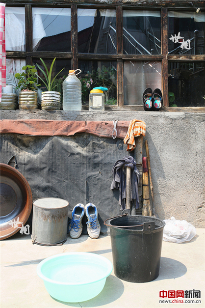 屋外的窗台和台阶上,摆满了各种装满水的瓶瓶罐罐,里面的水被阳光晒热后,可以用来洗脸洗脚。“这样可以省下水和电。”刘宇说。
