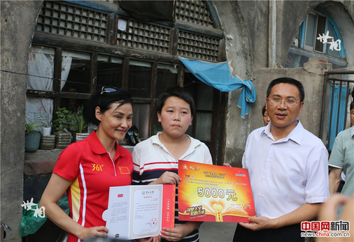 “加多宝学子情”爱心助学行动项目组的工作人员通过学校团委了解到刘宇的情况后,表示愿意资助他上学,并送去5000元助学金和装有入学生活必需品的“加多宝助学梦想行囊”,解决了刘宇一家的燃眉之急。图为加多宝集团党委书记庞振国和前奥运跳水冠军高敏与刘宇合影。