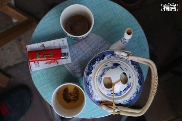 中国家长们来之前就做好了长期作战的准备,备上了部分生活用品,如茶壶、炊具和蚊香等。图为2015年5月23日,丰台区小区幼儿园门口,一些家长带来了茶壶等装备。法制晚报/视觉中国