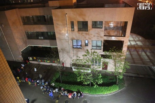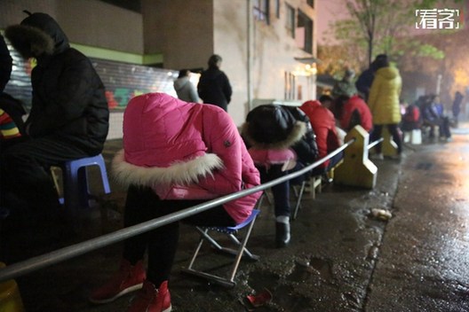 各大幼儿园入学火爆,导致家长为了子女入学昼夜排队,中国家长在对待子女教育问题上,长时间扮演吃苦耐劳、无怨无悔的角色。图为2016年4月6日凌晨2时许,在西安市雁塔区启源缤纷南郡幼儿园后门,50余名家长穿着棉衣冒着小雨连夜排队,为了孩子秋季入学报名。华商报邓小卫/视觉中国