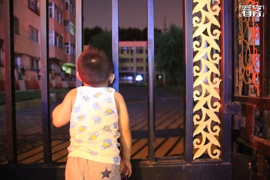 但并不是所有参与了这场教育的起跑线争夺战的家长就能够让孩子到达起跑线。教育资源分配不均,招生名额受限等问题让很多小孩无法入园。2015年7月20日,黑龙江省哈尔滨市,道里区建新幼儿园准备招生,幼儿园前家长搭帐篷等候多达八天八宿。图为等待入园的孩子,夜幕下在幼儿园门外向幼儿园里面观望。张澍 /视觉中国
