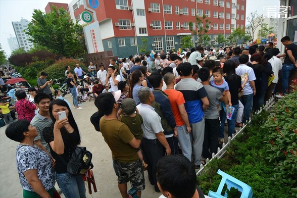 图为2016年6月29日,在山东省日照市济南路小学幼儿园门口,300多名家长们正在排队等候报名。刘明照/视觉中国