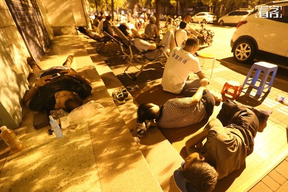 图为2016年8月15日凌晨,山西省运城市稷山县稷王幼儿园东门口,为不错过给孩子报名机会,许多家长排起长队席地而卧。据了解,稷王幼儿园以“划片、就近、免试”的原则,招收适龄学前儿童。因名额有限,许多符合招生条件的家长怕错过机会,不得不早早排队等候。史云平/视觉中国