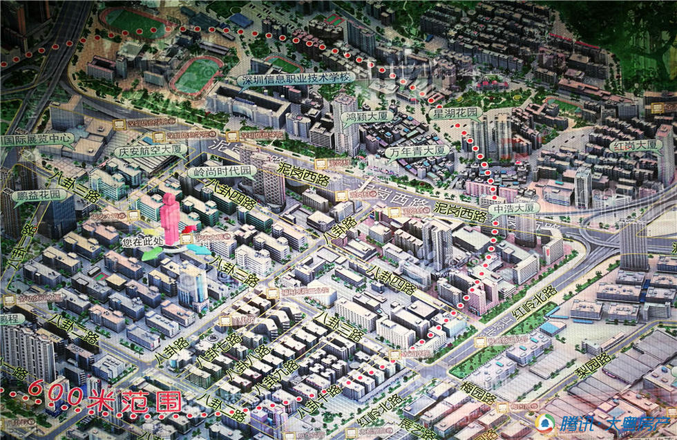 图为城市天地主场,据中介介绍,ABC座40多平、采光不好房子只需要230万左右,均价5万/平左右。蔡屋围片区的二手房价在5万/平-6万/平,相比其他区域属于一个房价洼地。