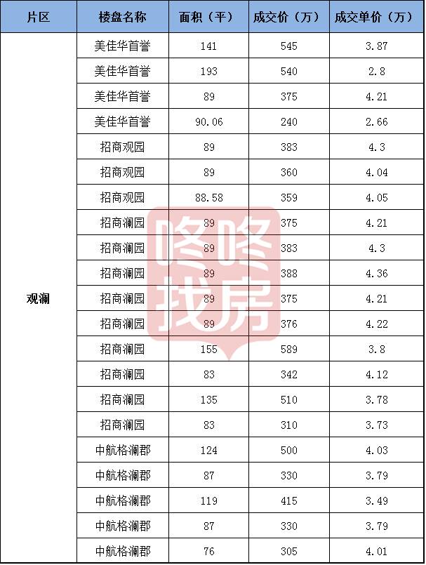 附观澜楼盘具体成交数据: