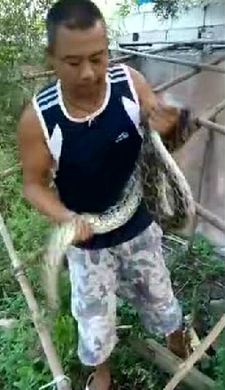 不料,美食刚到嘴边,它就被人发现了,结果就与捕蛇小伙来了一场“人蛇大战”。