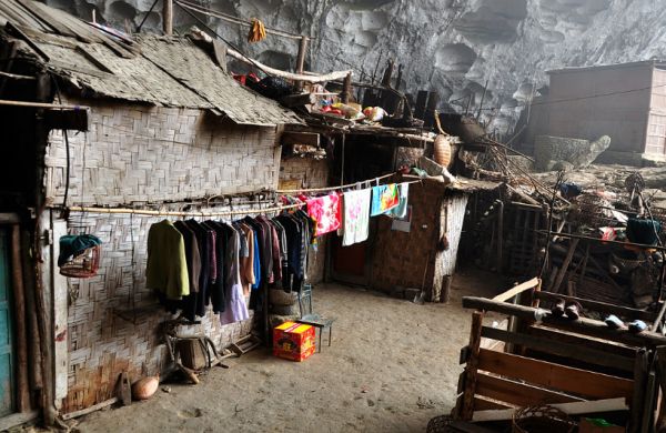 中洞居民们觉得,在洞里头已经住惯了,山下的房子不牢实。