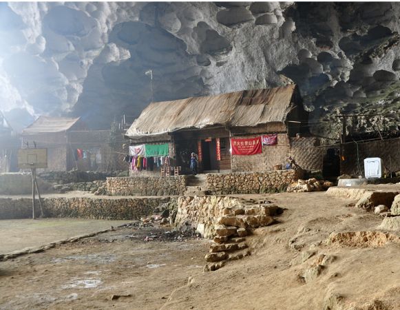 洞内开阔、寂静,洞中人家篱笆做墙,洞顶便是屋顶。