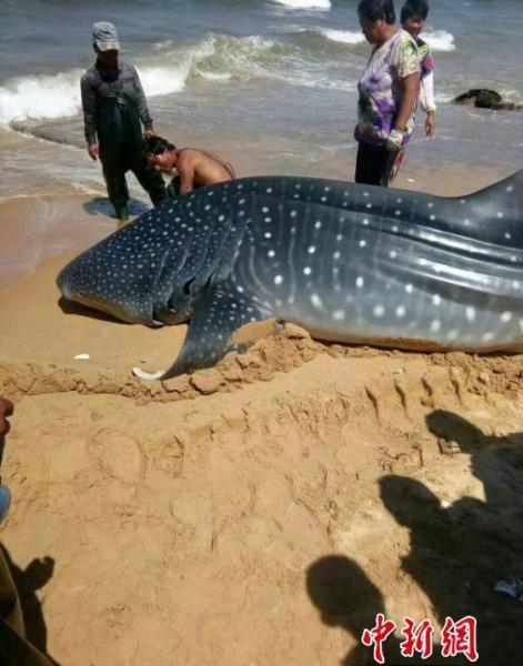 8月23日,山东省烟台市,牟平区姜格庄街道的渔民意外捕获一条长约4.5米,宽约1.5米,重约1.5吨重的死亡鲸鲨。由于鲸鲨属于国家二级保护动物,不能在市场上随意买卖,渔民将把鲸鲨送往海洋动物馆制作标本。