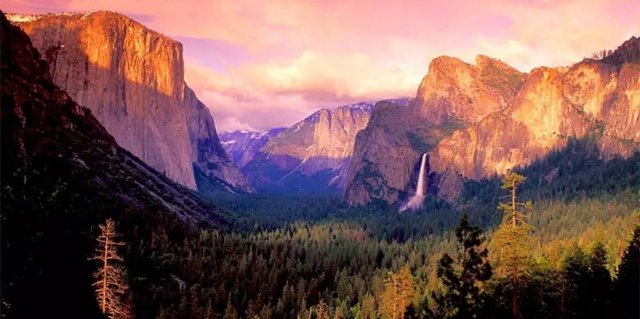 优山美地谷被称为「无与伦比的山谷」,有着完美的 U形曲线。高达 1095 米的酋长岩 El Capitan蔚为壮观。在这上面攀岩乃至露营,视野绝对棒。
