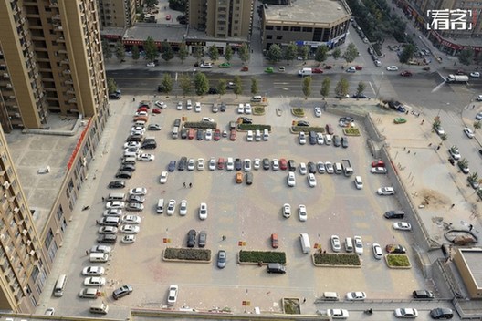 “车停哪儿?”已成为有车一族除了堵车之外的另一个魔咒。数据显示,截至2014年底,中国的汽车保有量1.54亿辆,其中私人小汽车1.05亿辆。初步测算,汽车保有量年净增约1900万辆。图为2015年10月22日,陕西西安,某小区门口广场地面上并没有画停车位,但上面停放了近百辆轿车。视觉中国