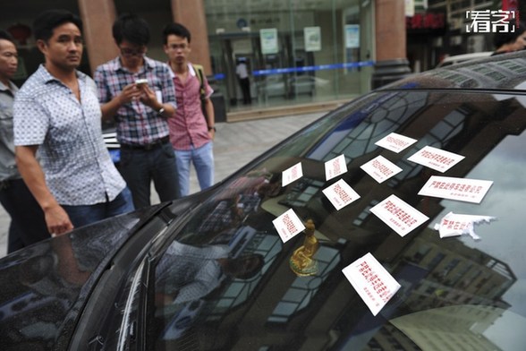 此外,由于停车管理制度的不完善,民众合法停车意识的不足,“乱停车”也是中国特色之一,加大了车辆被贴条、被盗、被蹭的风险。图为2013年7月15日,福建泉州,一辆私家车因乱停车,被贴了29张写有“严禁在此停车违者必究”的纸条。视觉中国