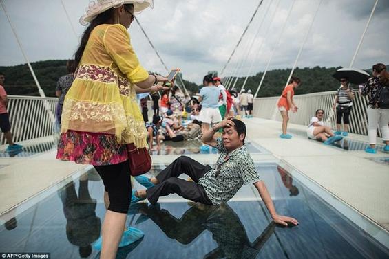 桥面为玻璃结构,垂直于下面的景色透明看见。