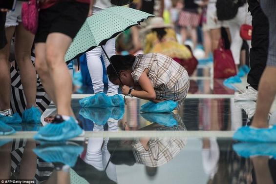 桥面为玻璃结构,垂直于下面的景色透明看见。