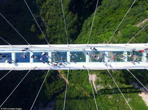 大桥横跨在两座山峰大约420米,宽6米,悬浮在空中约300米,下面丛林茂密。