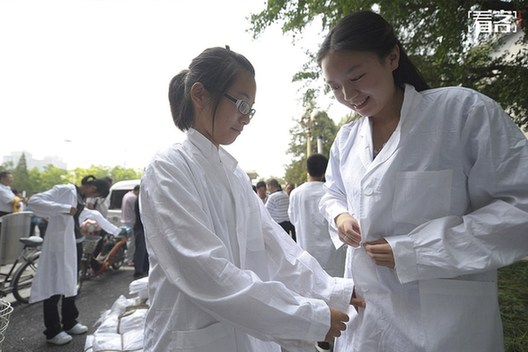 2011年8月24日,首都医科新生入学报到的,除了和其他高校新生一样领书、购买生活用品外,首医大的大一新生还需要购买白大褂。
