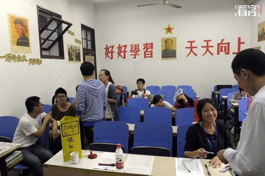 2013年9月7日,江苏省南京市,一所高校的教室里,身为志愿者的学长学姐们迎来了前来报到的大一学生。