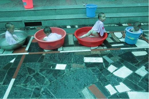 2012年5月,在长沙儿保中心,4个孩子一起洗澡,场面十分热闹。