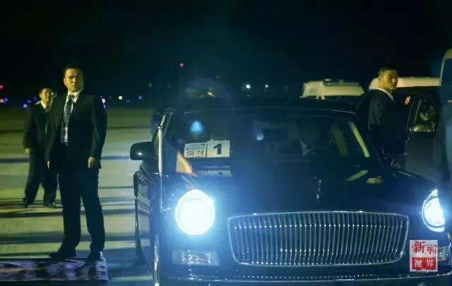 塞内加尔总统抵达杭州萧山机场,现场的安保人员在执勤。