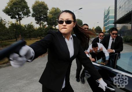 2013年12月3日,浙江杭州,女保镖在训练中身手不凡,威风八面。“目前女保镖市场很大,当下,中国资产1千万元人民币以上有80万人,不难推算,这80万人中大部分都有太太、女儿,她们的安保都更倾向于聘请女保镖,即使以身家过千万作为请女保镖的起点,那么,中国就需要80万的女保镖。近年来,中国先富群体对女保镖的职业需求越来越多,很多女性企业家和女性文艺明星人在保镖需求上偏向于女保镖,他们更加喜欢一个女性安全助理、一个女性安全司机、一个女性秘书。”
