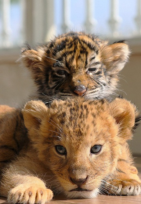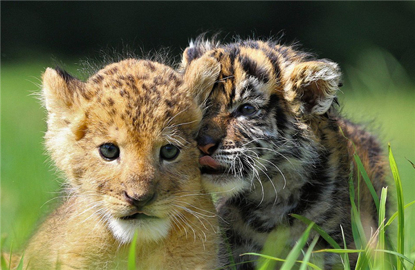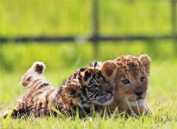在一般印象中,狮子和老虎这类大型猫科动物似乎无法与友好可爱联系在一起。不过这对幼狮幼虎向人们证明,猛兽也能做好朋友。