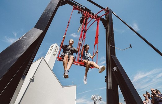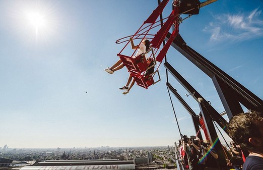 荷兰阿姆斯特丹市的一架名为“飞过天际”的秋千已于8月底对游客开放。秋千“飞过天际”坐落在阿姆斯特丹前壳牌大厦百米之高的楼顶,是欧洲最高的秋千,已成为荷兰首都的明星景点之一。自开放以来,已经有无数世界各地的游客闻名而至,想要一试为快。