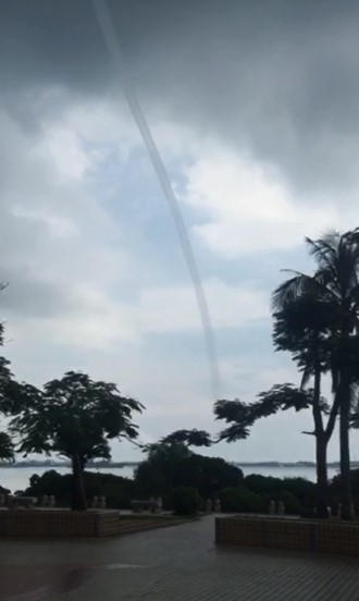 9月7日中午12点50左右,广东湛江观海长廊海面突然出现时间长达十多分钟的海上龙卷风,民间称此现象为“龙吸水”。