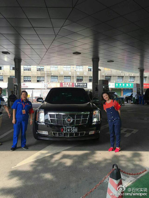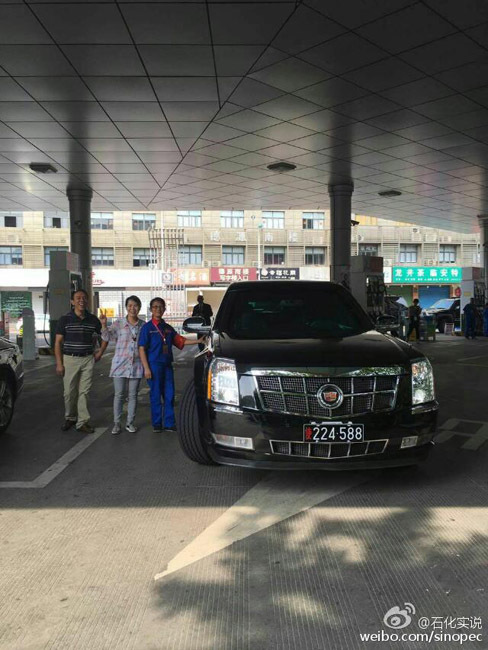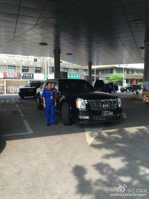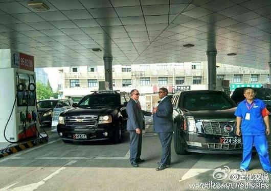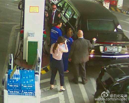 9月4日上午9点37分,总统车队5辆车又出现在中石化杭州莫干山路加油站;10点半不到又来了3辆。“他们是从加油站后面进来的,一开始我还不知道是美国总统专车。”负责给专车加油的是加油站员工李红艳,“等后来知道后,收枪(油枪)、放枪都小心翼翼的。
