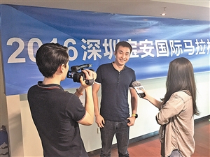 深圳奔跑者跑团宝体分部负责人张任接受宝安日报新媒体记者采访。