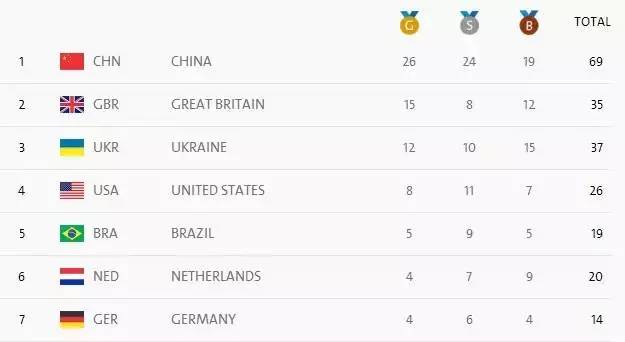 目前,中国军团继续领跑奖牌榜。截止北京时间11日上午,中国以26金24银19铜共69枚奖牌的成绩高居榜首!