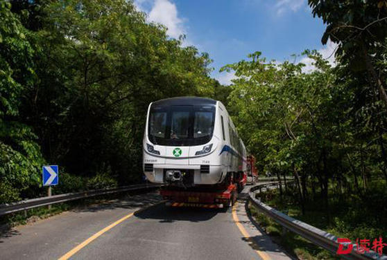 地铁车厢由蛇口转运至深云车辆段的过程中经过立交桥匝道,承担运输任务的卡车司机必须加倍留意安全。