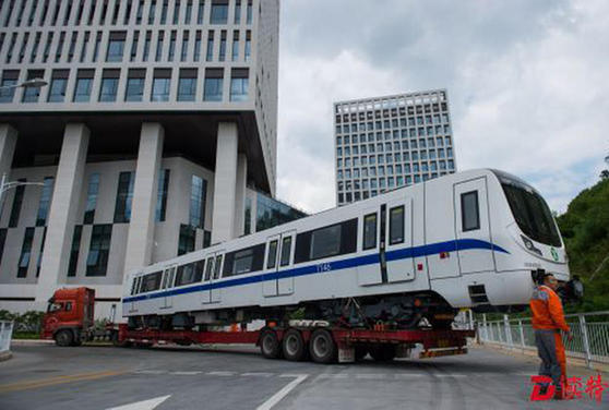 经过最后一段跋涉,地铁7号线车厢最终运达深云车辆段。