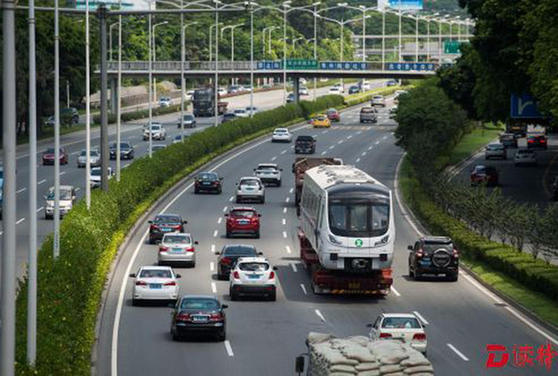 车厢从蛇口运输至深云车辆段途中经过北环大道。