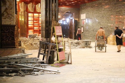 2016年7月12日,郑州“皇家一号”,曾是高端夜总会的代名词,因涉嫌色情违法行为,开业仅1年多,被河南警方“异地用警”查处。从2013年11月至今已尘封2年9个月。7月12日,“皇家一号”的家具设备突然被货车拉走变卖,室内装修也被拆除。东方IC供图