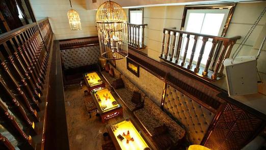 复式的包间一楼唱歌,二楼有棋牌室和会客室。