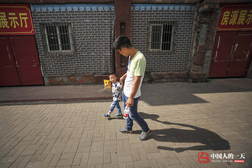 夫妻都打工,孩子在爸妈家带,熊德华只有周末才能陪儿子。见到熊德华的前夜,他还在帮父母回收二手地板,忙了一个通宵。他说,自己非常想稳定下来。在外猛干了十年,从工地到快递,风雨不遮的苦吃够了、吃痛了,也不喜欢做生意,希望儿子能有城里娃娃的教育,不再像他。