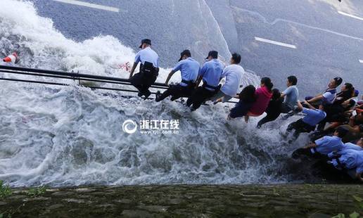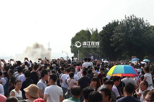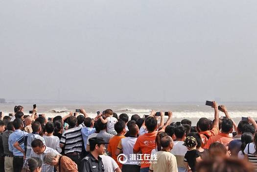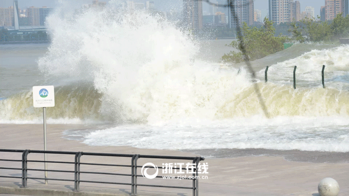 9月18日报道,受台风影响,雨水增多,今年钱塘江潮涌高度比往年可能更高,更壮观,可看性更强。今天下午3时10分许,大潮到达杭州之江路珊瑚沙段,潮水经过的瞬间,现场沸腾了。潮水涌来的几秒钟内,巨大的潮水打上岸,之江路珊瑚沙路段满是积水,瞬间被吞没。