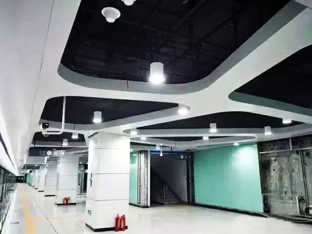 ▲深圳地铁7号线皇岗口岸站,采用清水混凝土与木色天花吊顶装饰。
