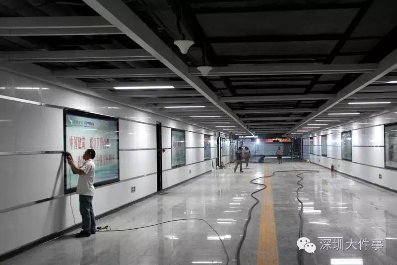 ▲深圳地铁9号线上梅林站,通往4号线的换乘通道正在进行收尾工作。