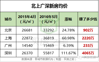 不单单是深圳房价涨幅惊人,北京上海也不甘落后,然而广州就比较悠着点。