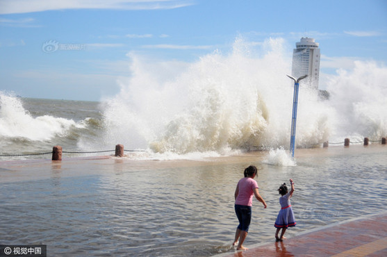山东烟台掀罕见大浪 岸边车辆遭拍打