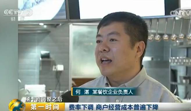 某餐饮企业负责人何湛告诉记者,我们中秋这三天大概全国七十几家店不到八十家店,大概我们测算了一下,三天我们因为费率的调整,大概能减少我们的费用3万块钱左右。对我们的帮助还是挺大的。