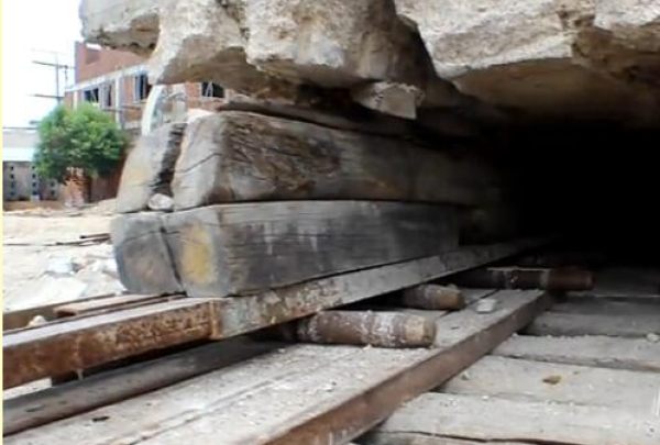 房子下面每挖空一处就用千斤顶把房子撑起来。