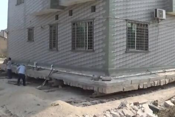 中国一土豪为躲避拆迁 竟花70万把房子连根拉走