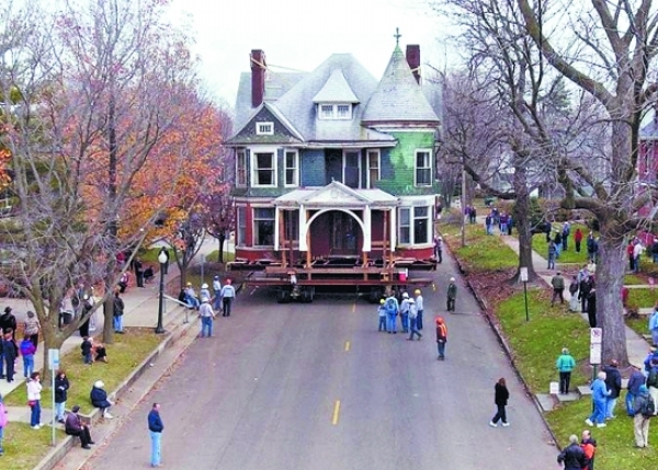 中国一土豪为躲避拆迁 竟花70万把房子连根拉走