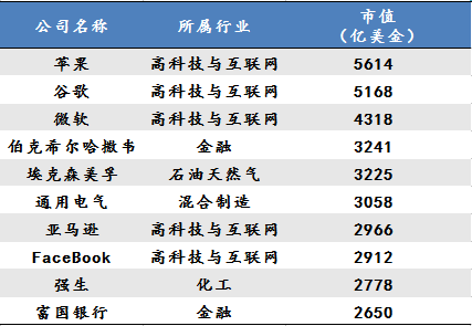 十年前,全球市值前10名主要还集中在能源、金融等传统产业。现在,已经被高科技与互联网企业占据半壁江山。