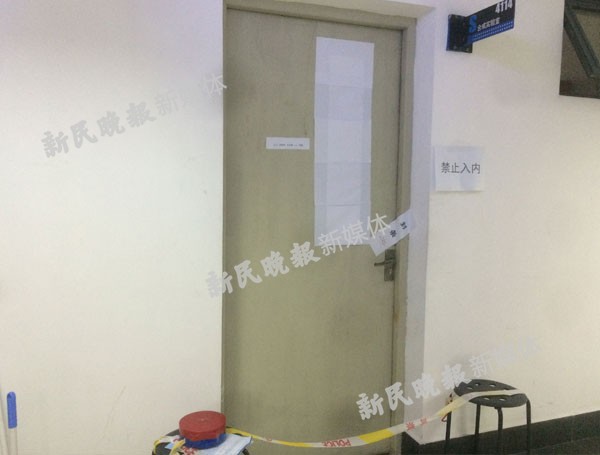 据记者获悉,事发地为东华大学化学化工与生物工程学院4114合成实验室,记者在现场看到,目前实验室门口已经贴上了封条,拉起了警戒线。