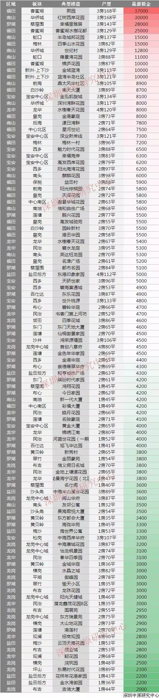 南山、福田和罗湖仍然是租金水平超出全市均值的区域,且南山和福田也还是小白们租不起的高价位。