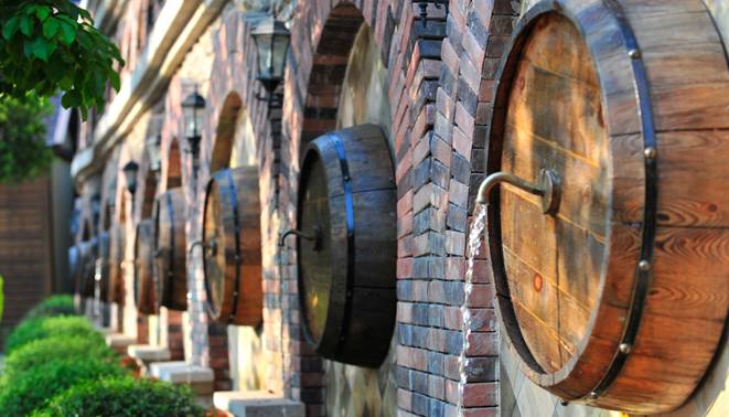 系列铜雕展示了从葡萄采摘到红酒酿造的全过程